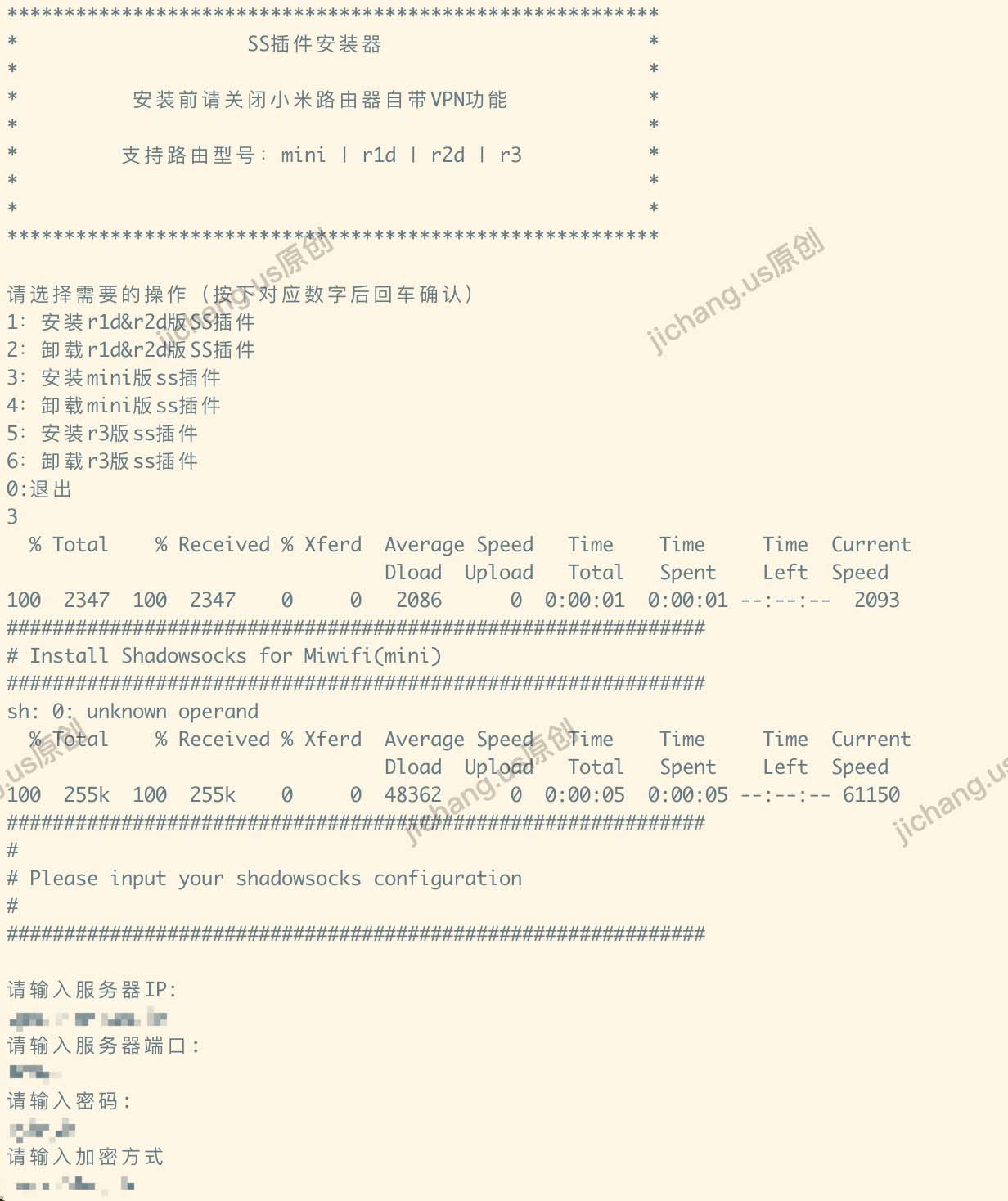 执行后选择路由器型号,填入服务器信息,等待安装结束